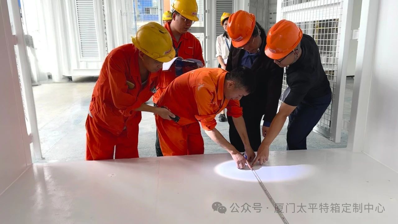 在驗(yàn)收現(xiàn)場,客戶代表對我司產(chǎn)品進(jìn)行了全面細(xì)致的檢查,從外觀美觀度、箱體材質(zhì)及焊接工藝、機(jī)柜設(shè)備安裝預(yù)制位到防腐防水等多項(xiàng)產(chǎn)品功能逐一核驗(yàn)。廈門太平以專業(yè)的研發(fā)設(shè)計(jì)、行業(yè)一流的生產(chǎn)工藝、嚴(yán)格的全流程質(zhì)量把控和高效的團(tuán)隊(duì)協(xié)作,贏得了客戶的高度贊譽(yù)。